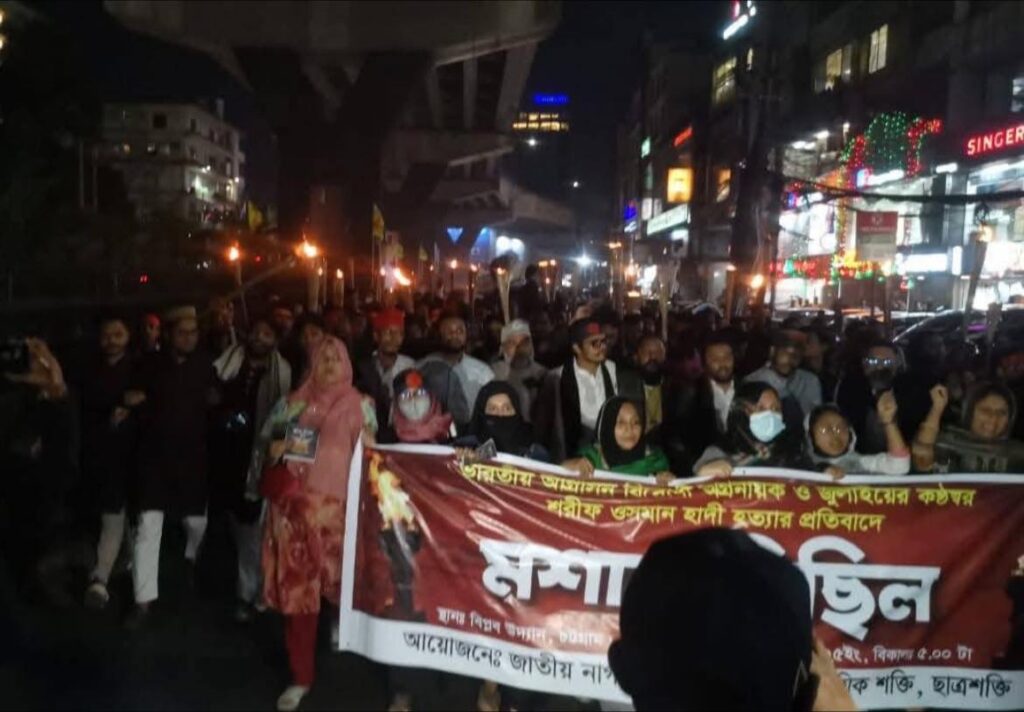 ওসমান হাদী হত্যার প্রতিবাদী মশাল মিছিলে এনসিপি চট্টগ্রাম মহানগর