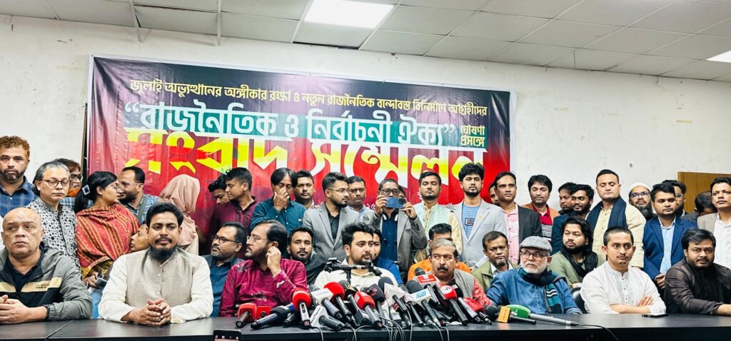 বাংলাদেশের রাজনৈতিক অঙ্গনে নতুন অধ্যায়ের সূচনা। জাতীয় নাগরিক পার্টি (এনসিপি), আমার বাংলাদেশ (এবি) পার্টি এবং বাংলাদেশ রাষ্ট্র সংস্কার আন্দোলন এই তিন দলের সমন্বয়ে ‘গণতান্ত্রিক সংস্কার জোট’ এর আত্মপ্রকাশ।