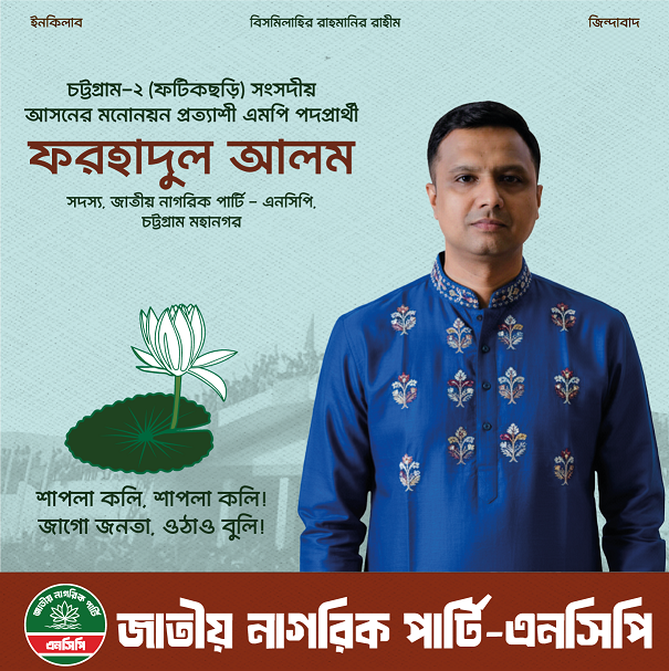 নির্বাচনী এলাকা চট্টগ্রাম ২ (ফটিকছড়ি উপজেলা) এর জন্য এনসিপি থেকে আগামী জাতীয় নির্বাচনে অংশগ্রহণের জন্য নমিনেশন নিয়েছেন বীর মুক্তিযোদ্ধার সন্তান মোহাম্মদ ফরহাদুল আলম। তিনি এনসিপি চট্টগ্রাম মহানগর এর একজন গুরুত্বপূর্ণ সদস্য। বৈষম্য বিরোধী আন্দোলনের সাথে যুক্ত ছিলেন ও জাতীয় নাগরিক কমিটিতে প্রতিনিধি হিসেবে যুক্ত ছিলেন। তিনি পেশায় একজন চিত্রশিল্পী ও ভিজ্যুয়াল ডিজাইনার।