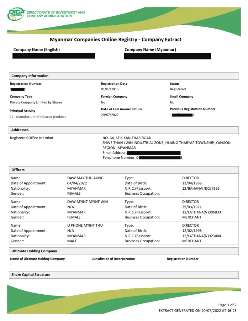 • আমন্ত্রণকারী কোম্পানির অবস্থা অবশ্যই মায়ানমার কোম্পানি অনলাইনে (MyCO) নিবন্ধিত হতে হবে।
