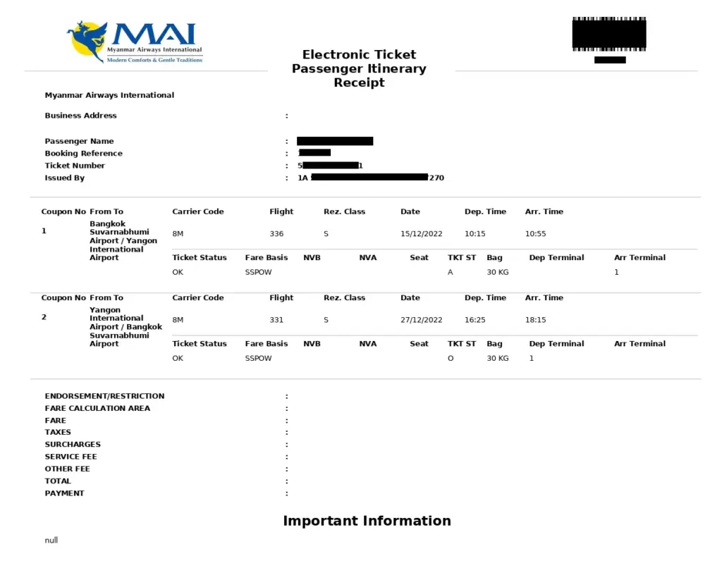 ✈️ রিটার্ন টিকিটের তথ্য দিন। (Booking.com এর বুকিং দিলেও সাধারণত চলে)